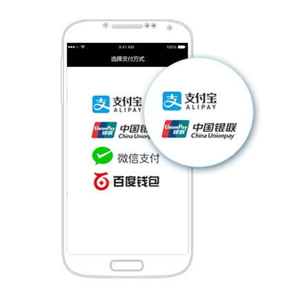 易支付 彩虹网,为iOS/Android原生/H5 App提供支付解决方案:支持微信支付、支付宝支付、银联手机支付、百度钱包等。